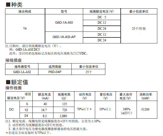 - 型号G6D-1A-ASI-DC5V